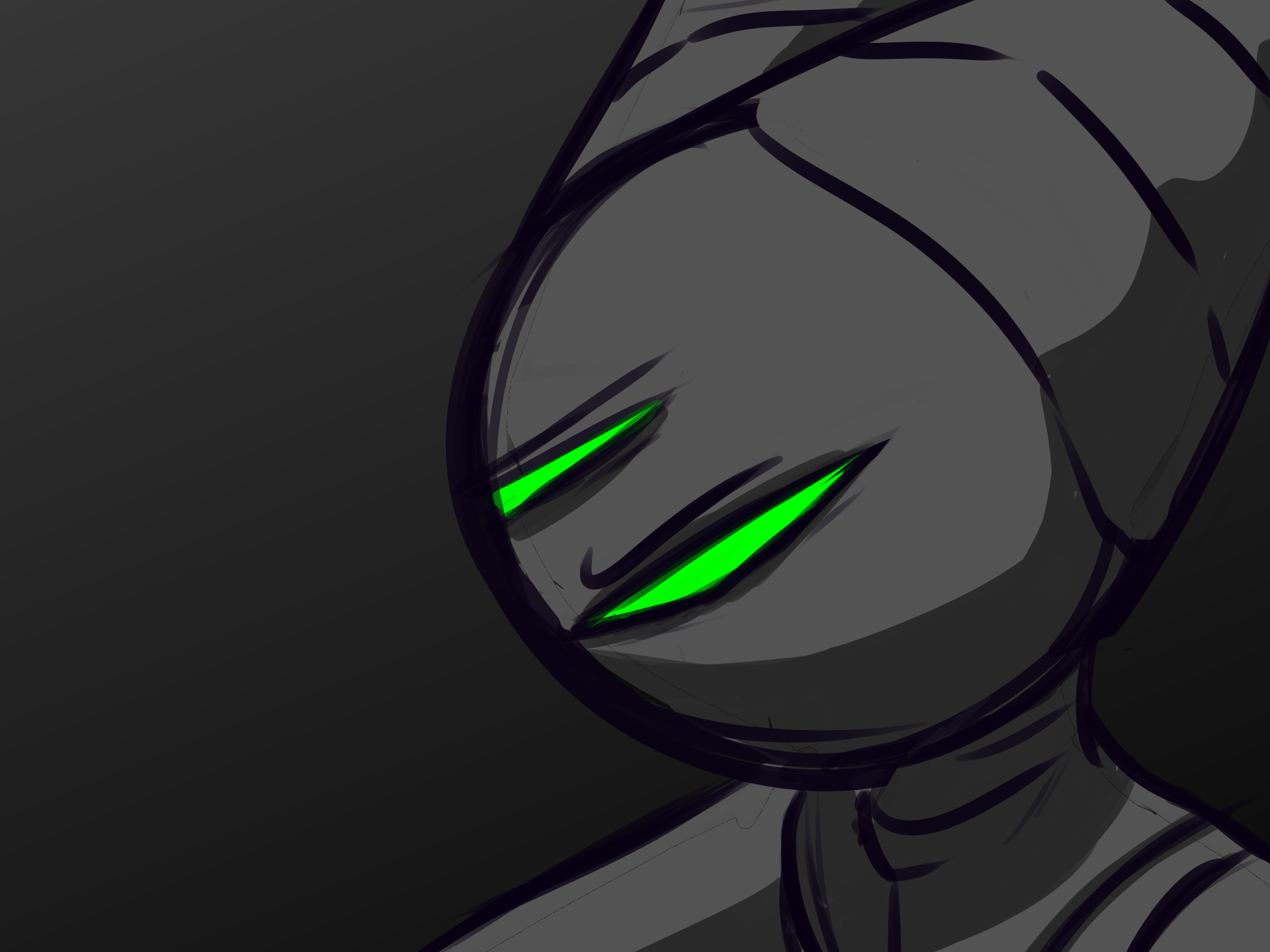 His body filled with pure terror, turning his head to look towards the attacker, time seeming to stop as his non-existent heart beat out of his chest...