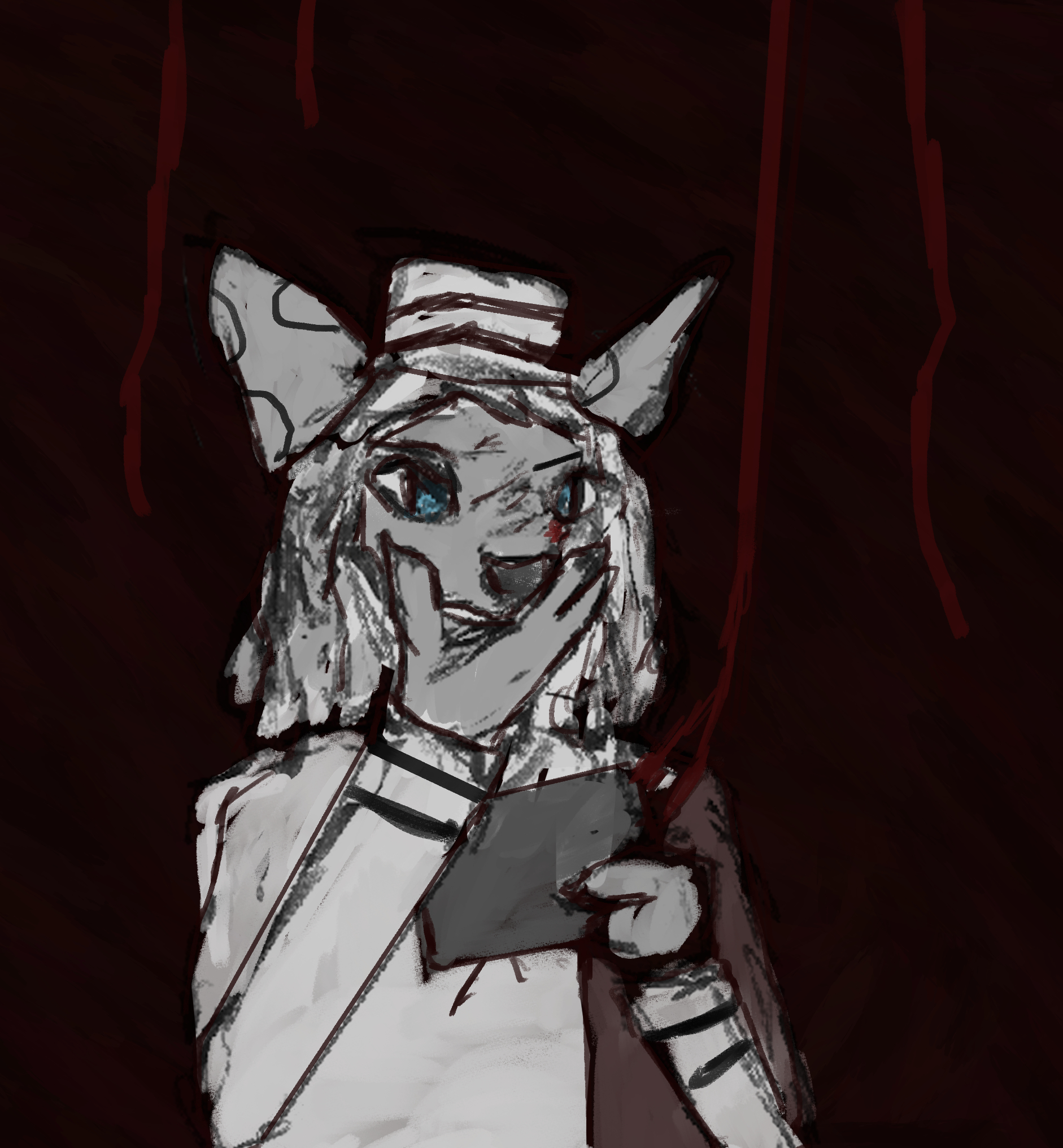 So far I have noticed there are at the very least 2 different ones: one of them has [b] grotesquely long ears, green eyes; the other has horns covered in red veins, yellow eyes.