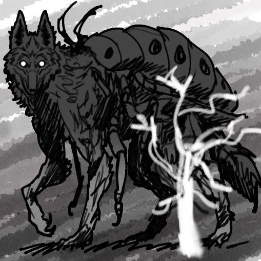 You rush to the window and feel your breath catch. A beast - part wolf, part insectoid, towering like a living dinosaur - lurked past the trees that bordered your fields, until it lurched towards the beans - its mandibles suddenly chewing through the biodiesel plants with terrifying efficiency.