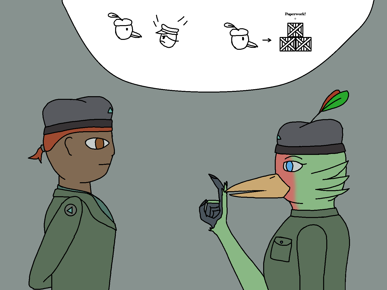 “Well, I don’t know what to expect really… I might be sent to one of the patrols, to keep an eye on ground squads. Or maybe to some regiment to watch over some new recruits.”