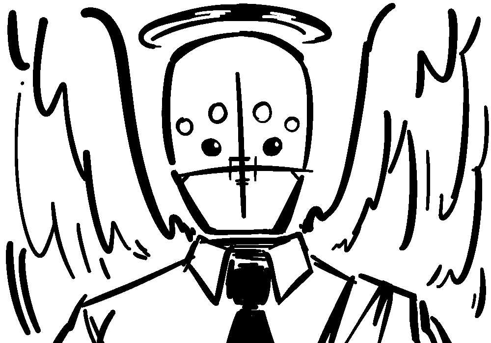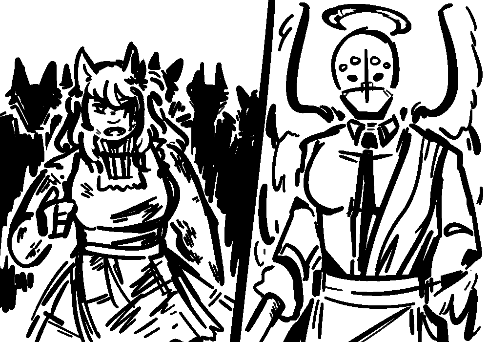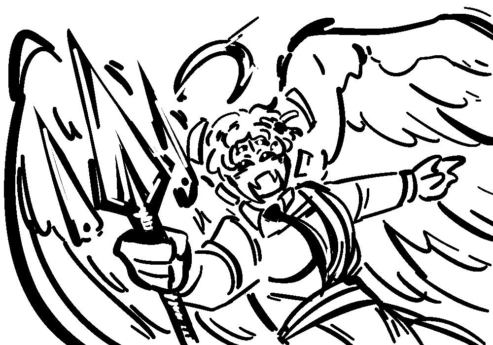 "That is the promise of Paradise. Our great reward from Zir! And all we must do is listen. Obey. Repent. Prevail. Redeem. These are the holy tenants of G0D." They huff, the fit of passion finally unwinding them down to their core as they sprawl their arm out, wings aspread. "Is it not beautiful? Inspiring? Appealing?"