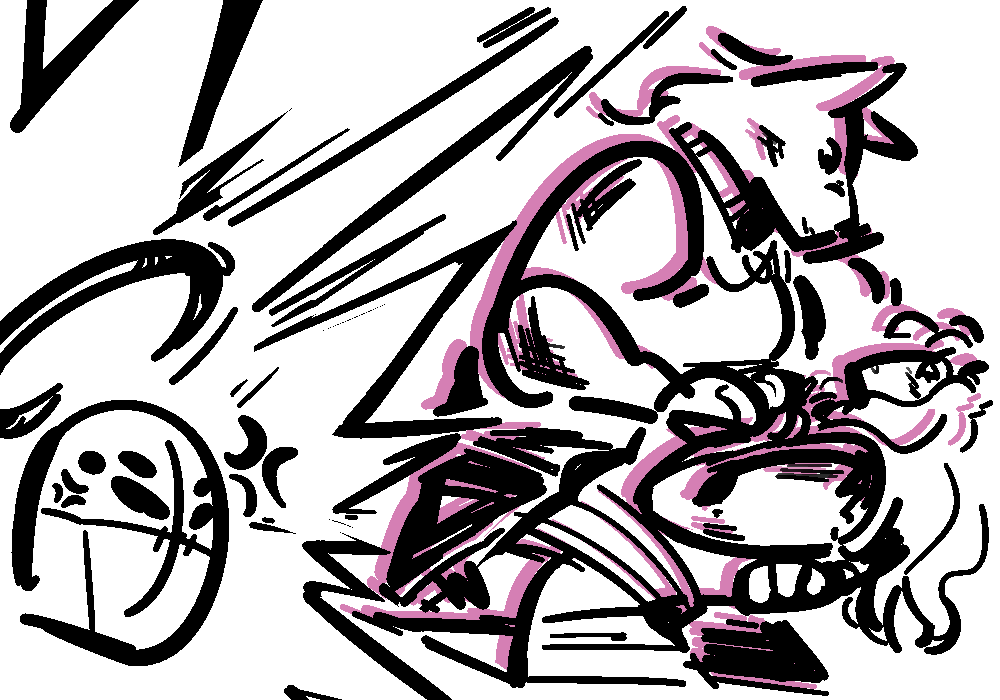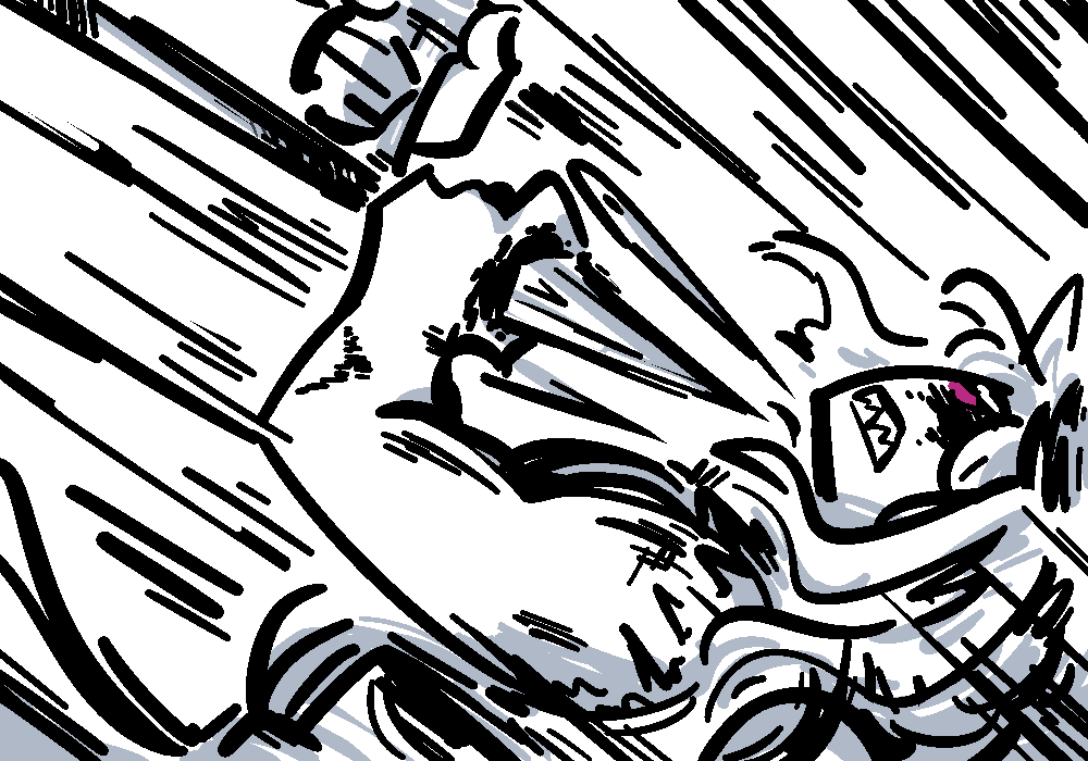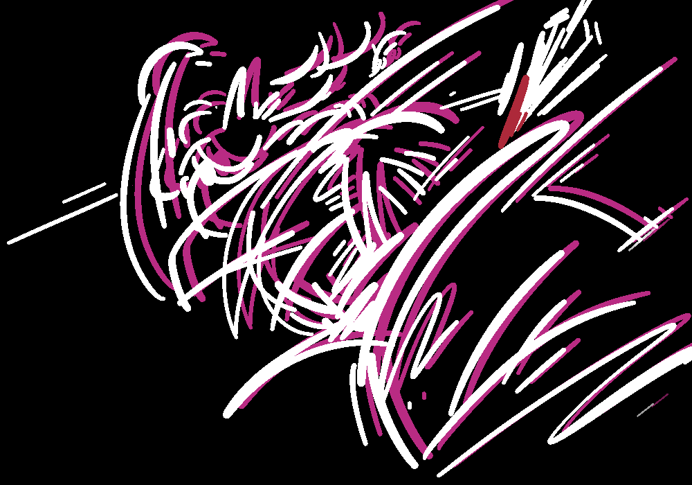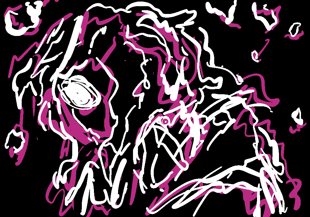 Images pulse around her. Visual noise that dances along the yells and gunfire. Outlines and shadows envelop her eyes, an animation keyed frame by frame along its smears. Indecipherable, until it comes all at once.