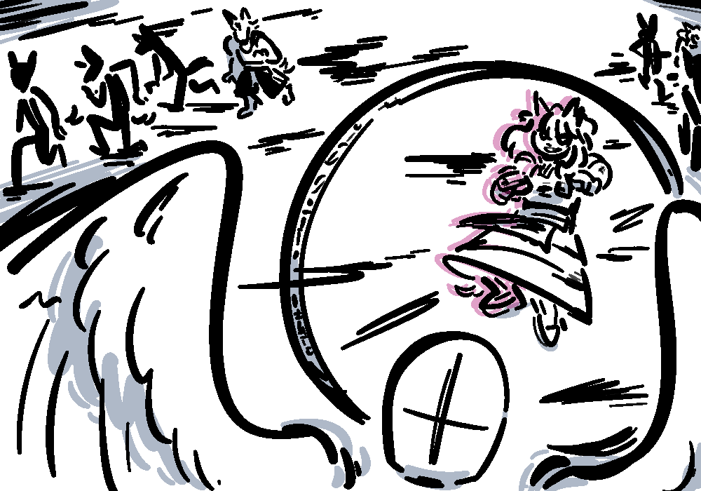Eiko rips herself away, body tumbling hard against the scarred ground, terrified of another blow that does not come.