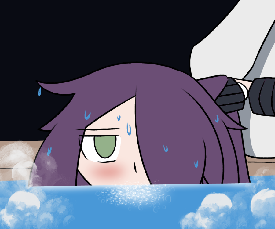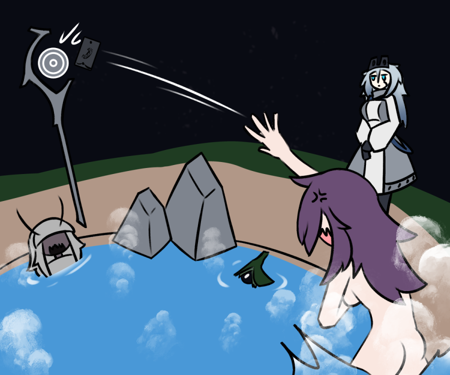 "What kind of magical girl are you? You're supposed to sit such that the water and steam tastefully hide all your delicate bits from the audience's point of view!"