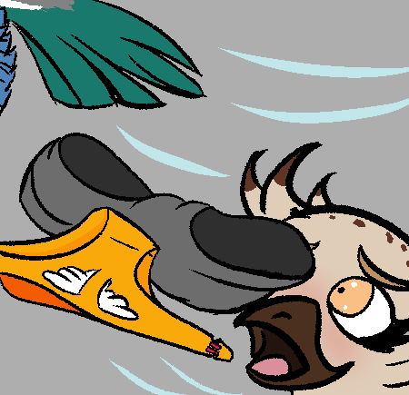 Apricot slips her wing-talons under her skirt and whips down a pair of shorts and panties, quickly stepping out and skittering aside. She hands over the panties ashamedly. “Here.”