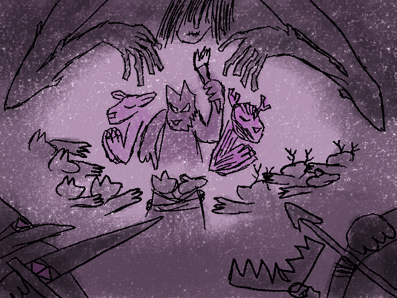 "Subtlety felt the power of the forest flow through her. The others murmured, not sure what to make of this change. The Witch reached out her hand and Subtlety took it, joyously, gazing reverently up at her savior. 'Where you sowed division now you will mend. Go and guard the way. Let none enter the deep wood that mean us harm.' She looked out to the crowd, eyes glowing darkly in her craggy face. 'And she will not go alone. Those of you who were quick to heed her words of hate, to turn on your fellows. Those of you who have the guilt gnawing in your heart, step forth and take up this duty. Make right what terrible wrongs you have committed and you will have earned your penance.' Many did step forward, and took the Witch's mercy. And to this day the bough wights keep the deep wood safe, so there will always be safe arbor for those who love their fellows."