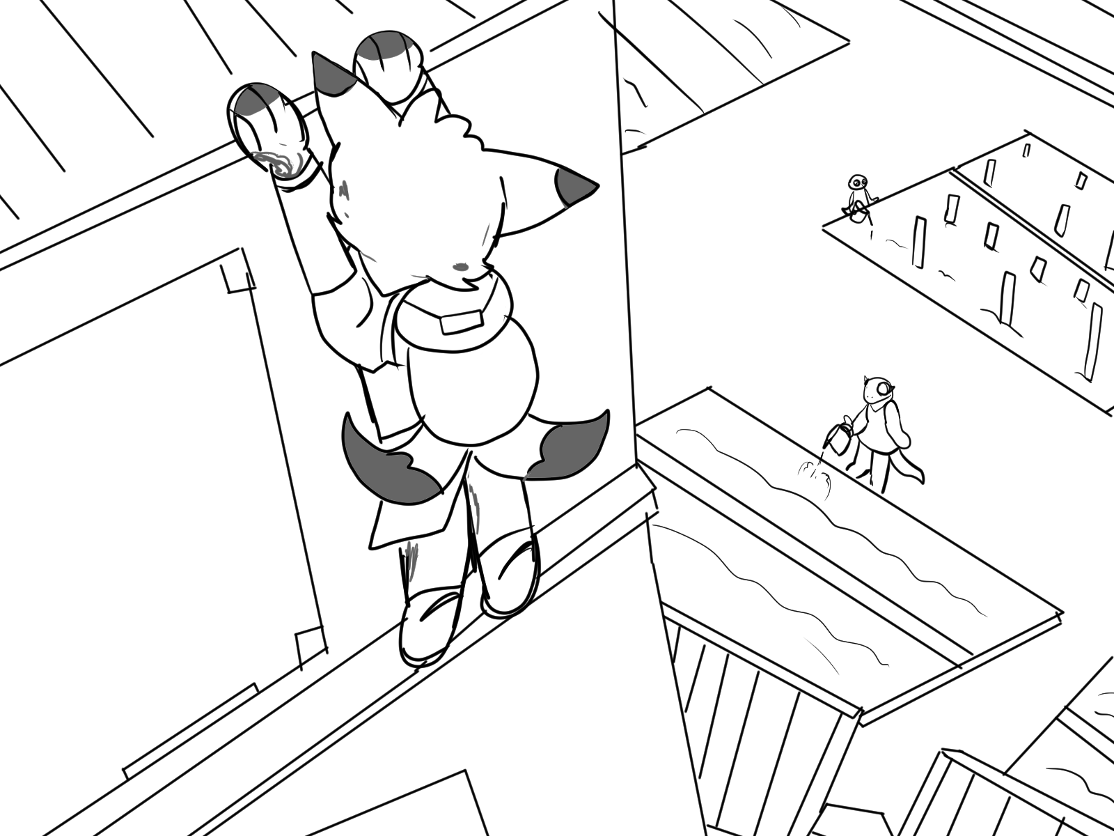 “Fair enough- Ooop” He says, looking around at the square and roads beside him, a wave of sudden anxiety overtakes him.