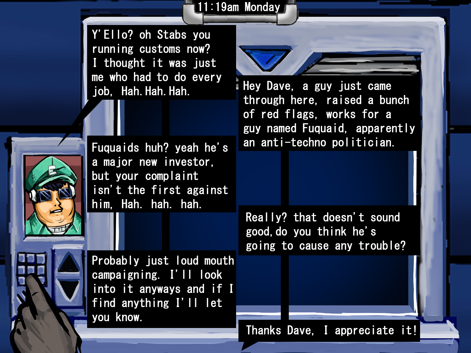 There we go. Now she's going to tell us where to find the pre-screened ID cards that the stupid apple didn't talk about during training and Stabitha will look like she's cleaning up after someone else's incompetence. Then Gilda will like us for helping her instead of blaming us for holding her up! See, friends are useful when we need someone to take a fall for us!