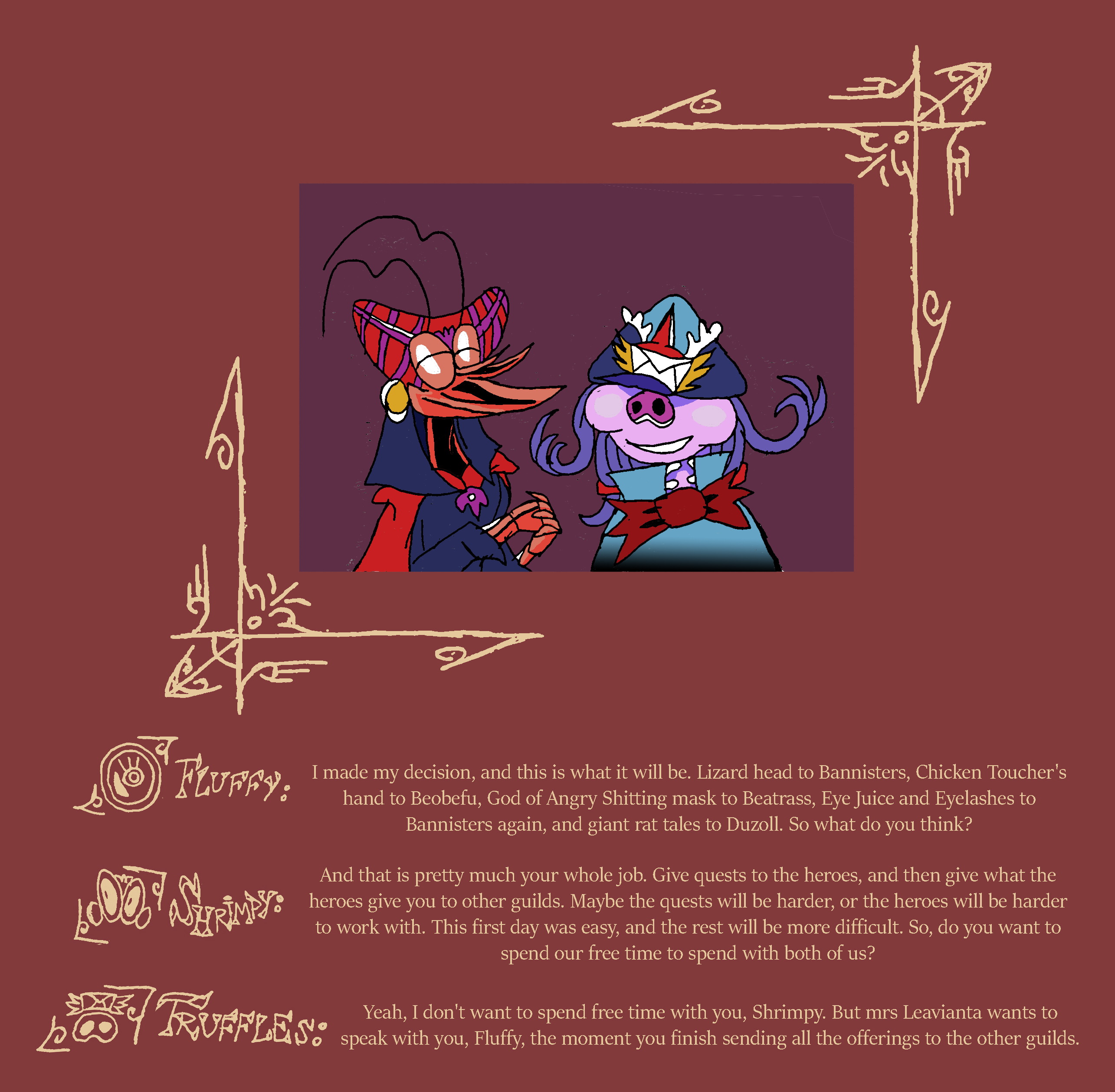Ballerina Knight: excellent job. Though I wonder, what was her side of the story with what happened with the imprisoned knight and the merchants? She probably witnessed all that. Also, did she find out why that eye was observing the village? I suggest giving her bonus pay for taking care of both jobs.