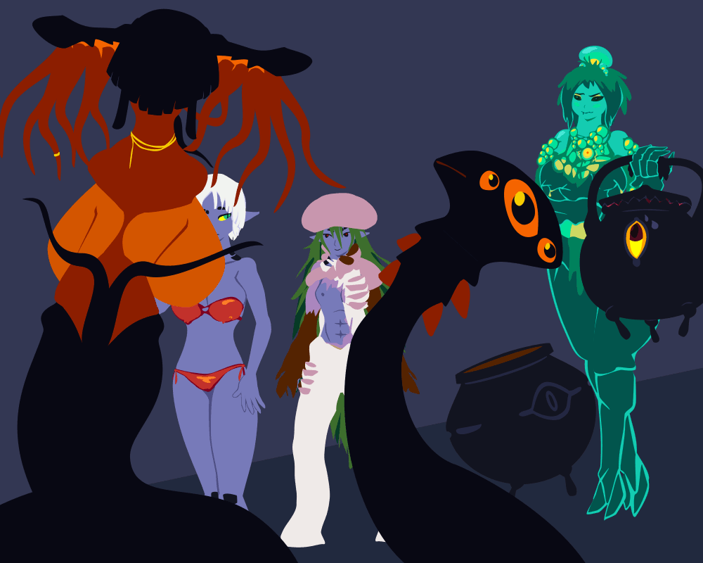 Should Kali switch places with Linea, and be a precious, protected, pretty little princess helping a procession of slimes collect water for the Thaumatorium pool, or should all the Alkalines swap and Kali take the place of Alka dwelling in the slime pit to focus on becoming massive and making far too many slimes.