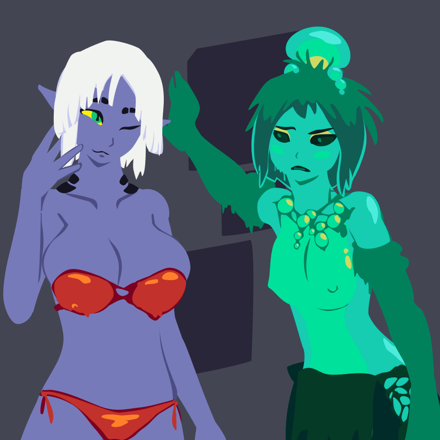 Linea yanks the top of Stargazer's slime swimsuit free.