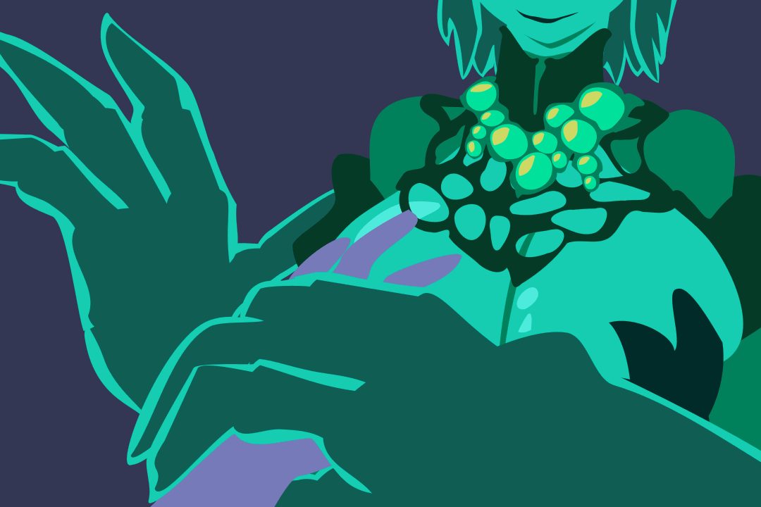 Alkaline, or Kali would be more accurate, has been stripped of most of her crystallised slime and significantly reduced in general judging by her skinny and shrunken state. Whatever congealed and condensed Stone Mist she'd taken into her that had been giving her such a full figure has apparently been sucked out of her by Moriko. Stargazer bites her lip, she has to see that! She has to get past Kali!