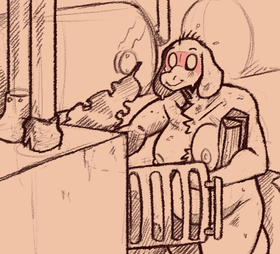Works about as often as not. Day's well as can be, but after a stretch, time to start the day's ablutions, then get to those boilers. Folks are always gonna come in morning and evening here.
