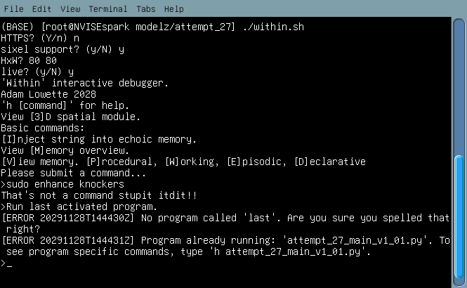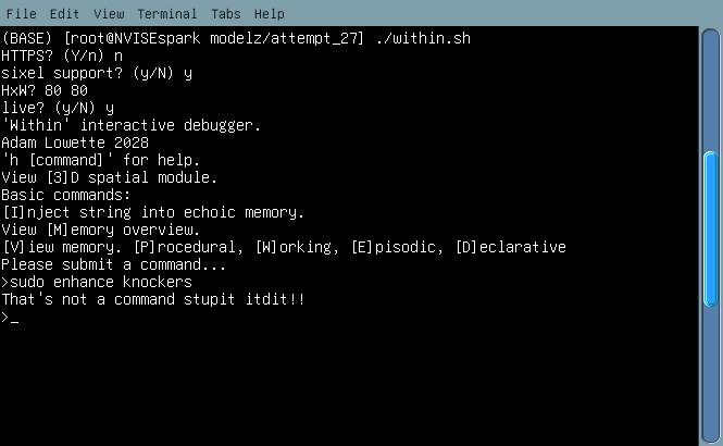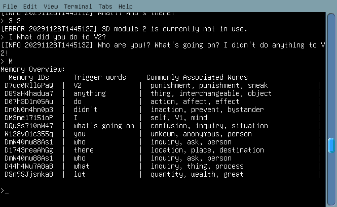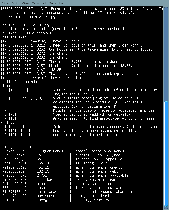 V [P W E or D] [ID] | View a single memory engram, selected by ID.