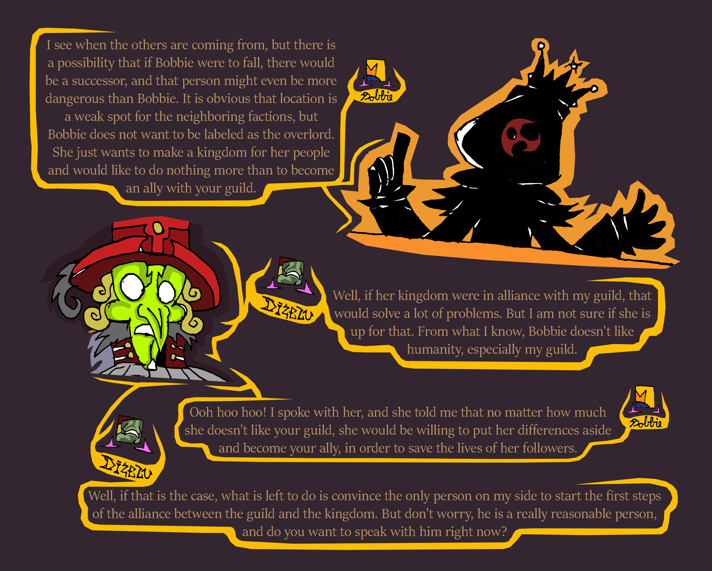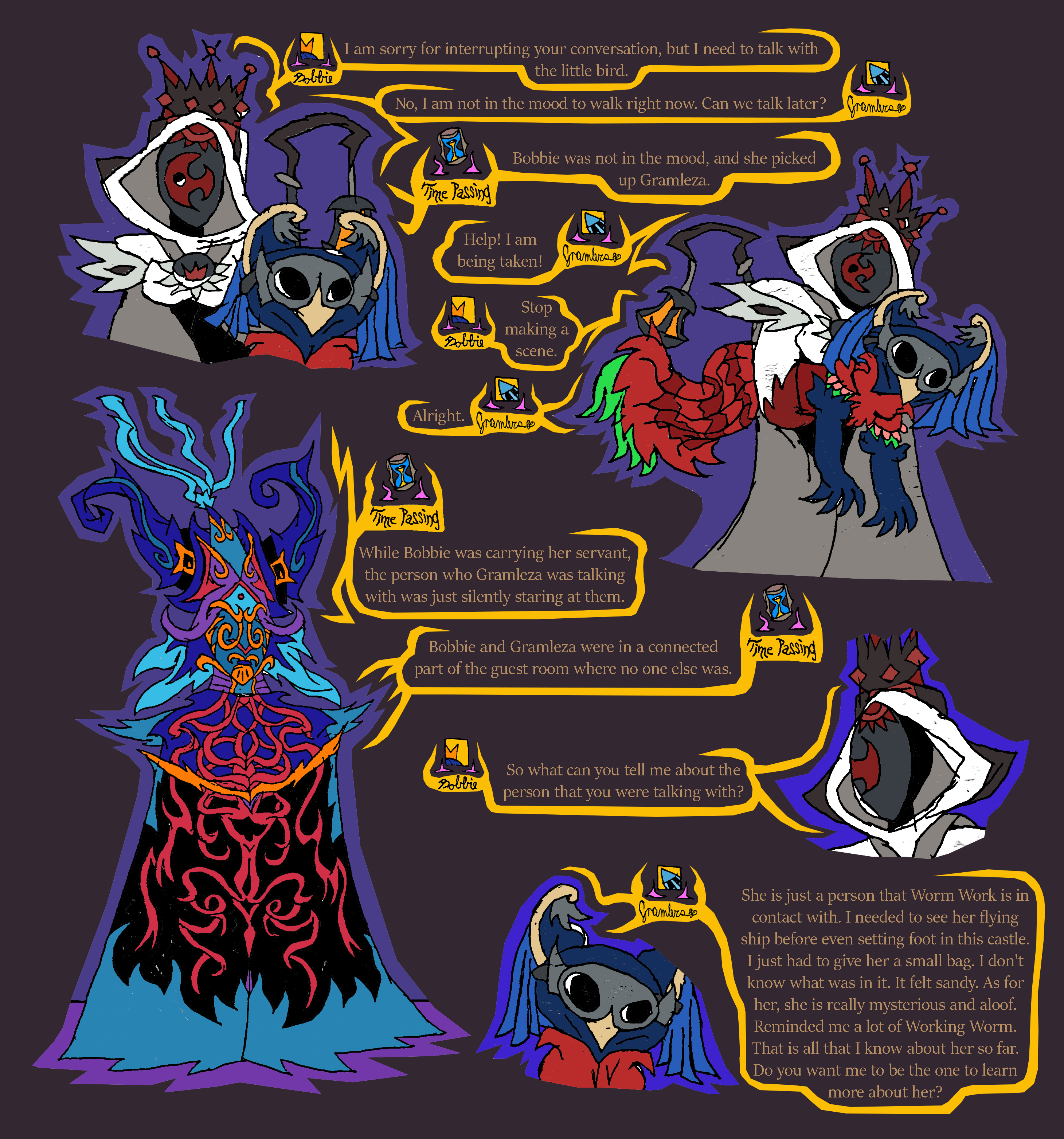 straw woman, we talked with her before, wanted to make some kind of deal with us, alligned with worms.