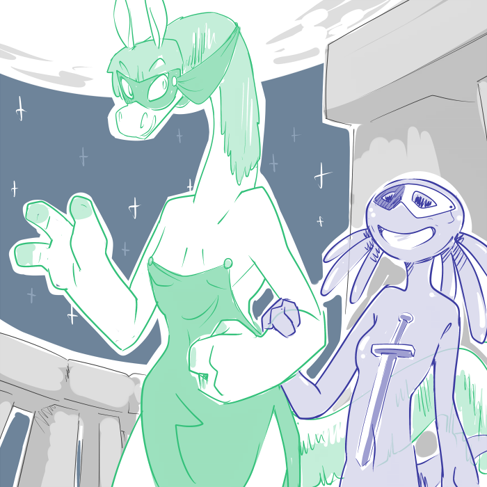 “Is that okay between you and Nixxy?” Casey asks, taking the undine’s hand in hers. It is, of course, wet, but the elemental’s surface tension keeps the liquid from soaking the mouse’s fur.