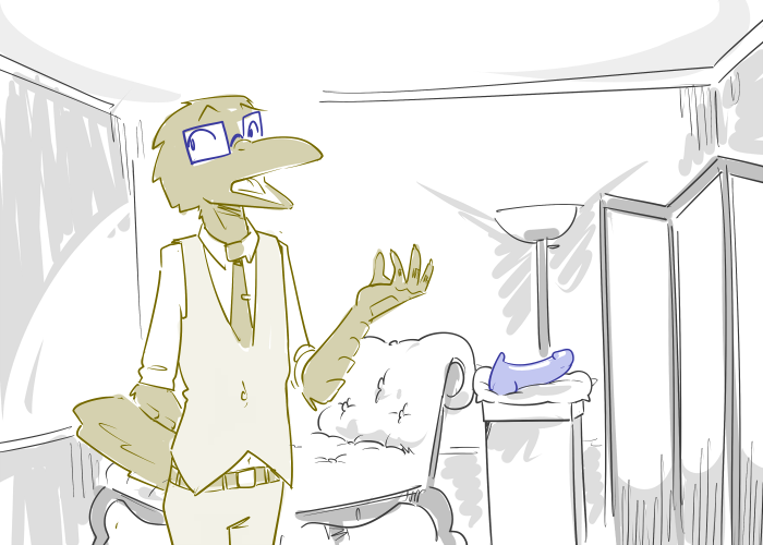 “Great Fates! Would that work?” Cecil asks, scratching the underside of his beak.