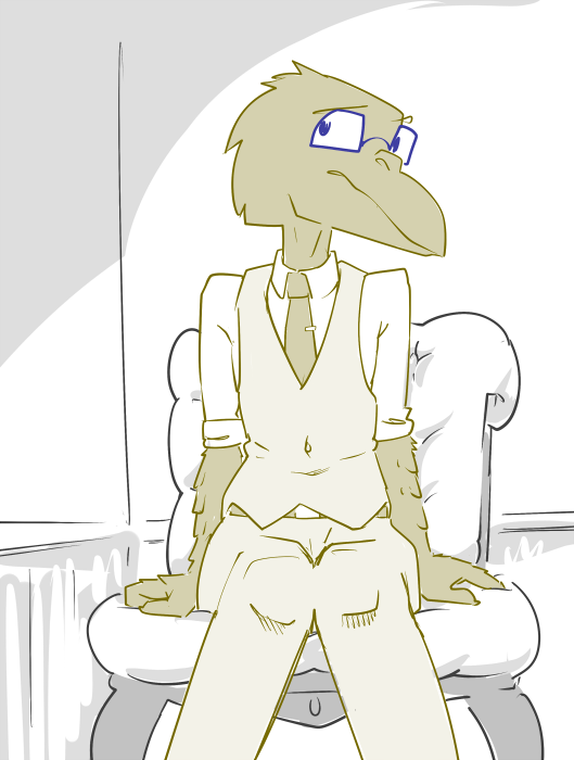 The dapper bird sighs and plucks at his vest anxiously. “It’s been… difficult. He doesn’t like being under a roof, so finding a space safe from prying eyes together has been, er, challenging. Fortunately, since he wasn’t included in the plot to steal the Aegis, he's fairly safe from their attention. I’ve asked him to keep tabs on court agents in the city from the sky.”
