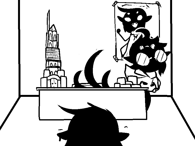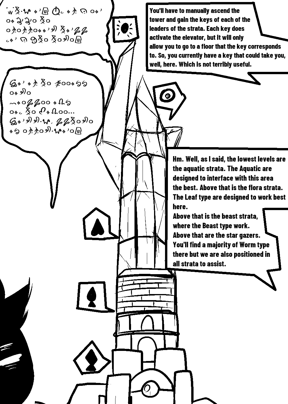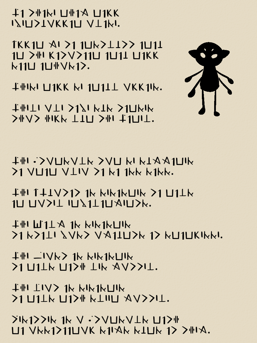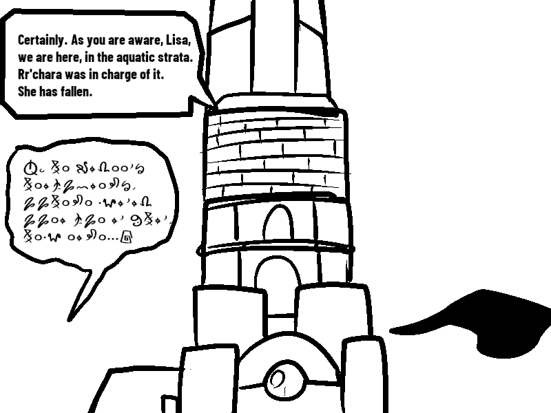 I also found it neat how it's just barely possible to translate that first scratched-out line. There's just enough bits of symbols sticking out that you can identify everything needed to figure out what's being said. Even when that one symbol can be any of SEVEN LETTERS lol)