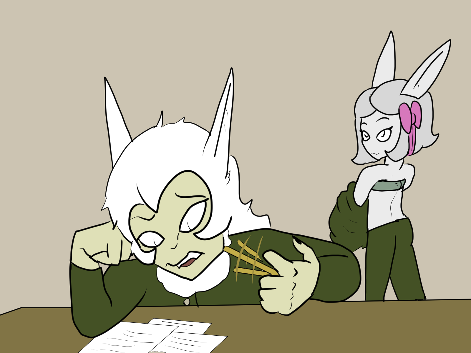 I guess I'm kinda dull by comparison. Since you were gone, Nunnette got me to help her find the coroner that's doing the autopsy on uh...up what's his name? Donny? Dimmy? Dimsdale? The guy the scary woman was possessing. That guy. Apparently he was a missing soldier and wants to find out what happened to him? Without telling her commander what she's doing? I'm going through all the paperwork on that now since it's in Rezan script and she can't read it.