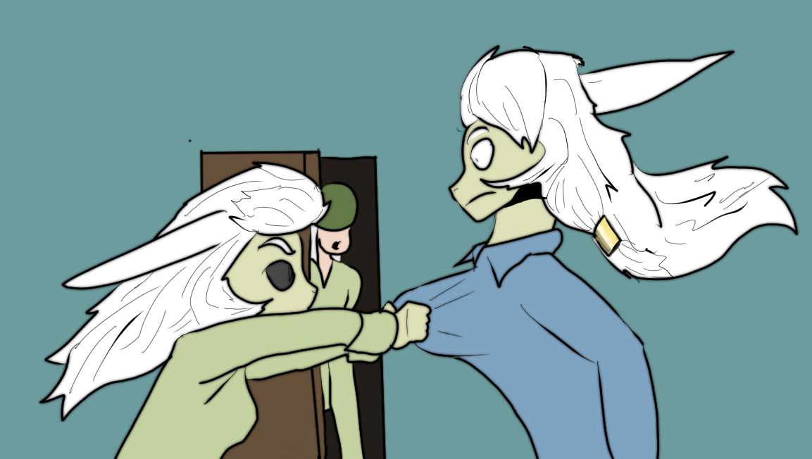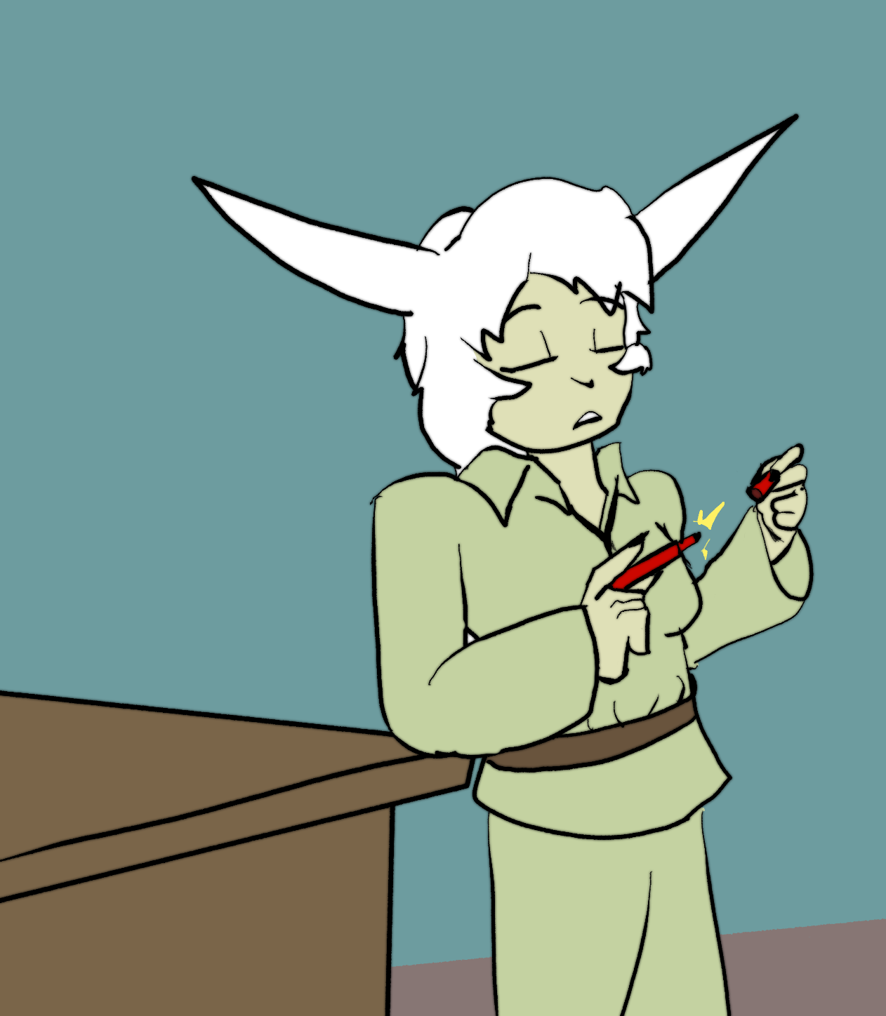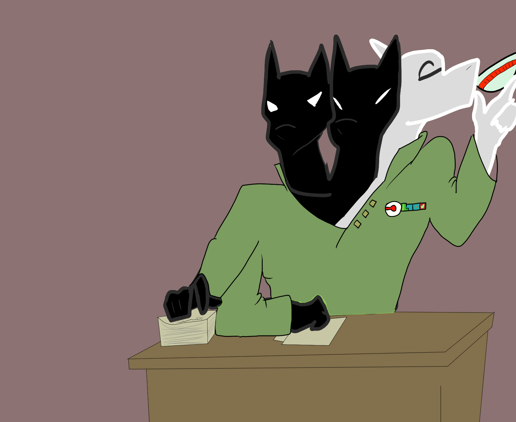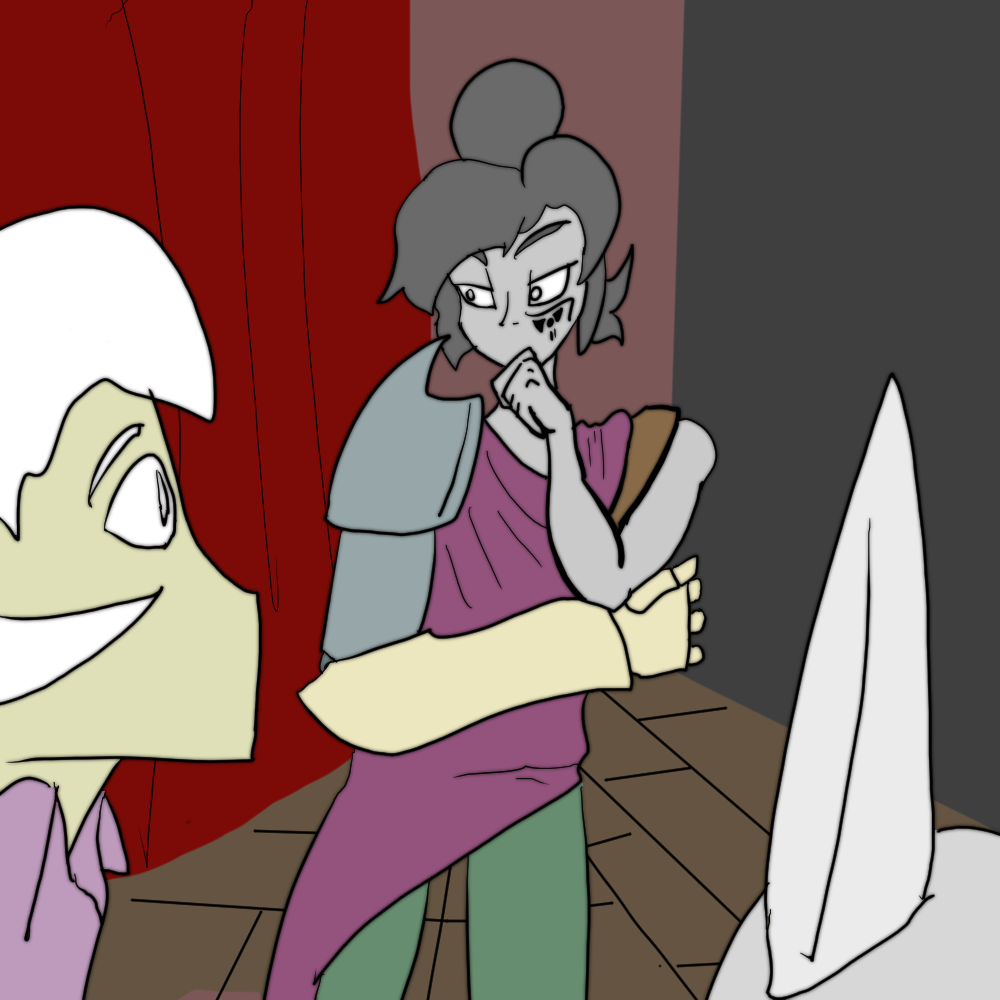 "Yeah yeah now listen. One of my colleauges, a Matrin vel Kessler, he was working with something dangerous.", she leans in and whispers the last part, so close I can smell the fruit she's been pigging out on. "A doppleganger..."