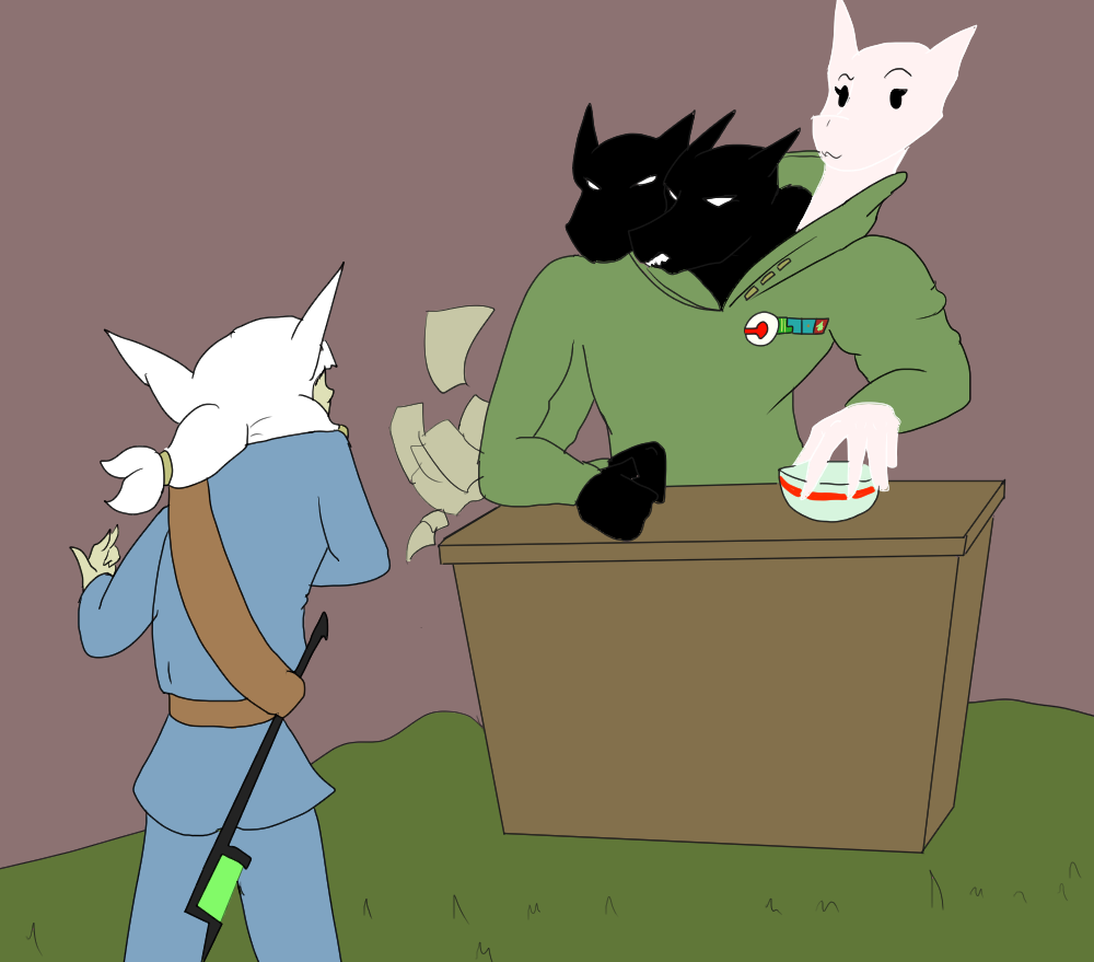 "Hello there." The voice is husky. Not quite what I expected. "Iagn Janeza Makag, you look better off than a goblin pencil pusher. I take you need a body that needs guarding?"