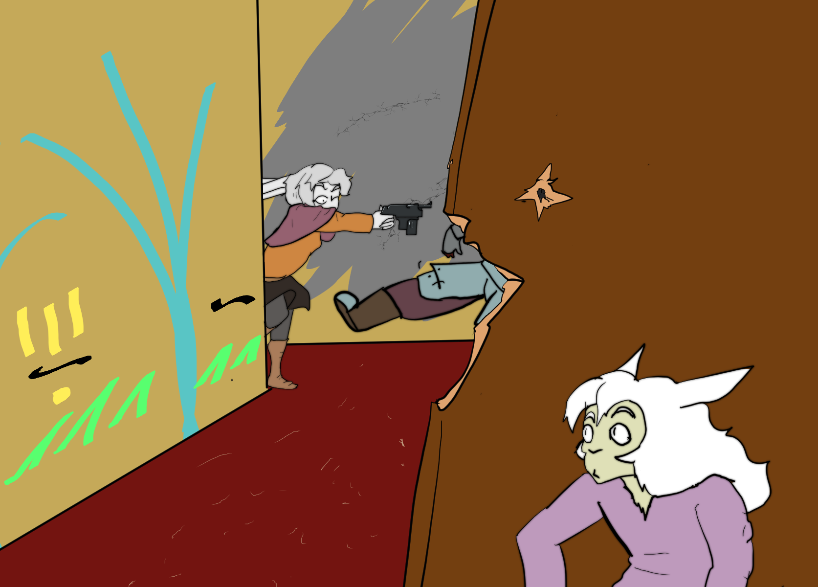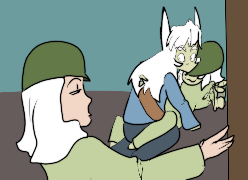 Oh gods dammit all and she's here too?! I can hear her, but I can't see her! Oh fuck what do I do what do I do?