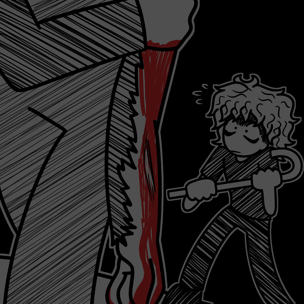 -Roger can get a good swing in as back-up, but might hesitate to deal a lethal blow. He would borrow Albert’s cane, and aim to Disarm