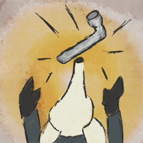 I take the hammer and strike it down on his feet a few times. He howls and snarls in pain, cussing and cursing to no end.