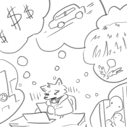 Okay, realistically things aren’t catastrophic–he still has food, water, shelter, and a job–but this is probably the most stressful combination of things that have happened to Henry since puberty. He wanders from the sidewalk to the curb and sinks down. Take forehead, apply to thumb and pointer finger for perfect melancholy form. A few manly tears trickle down his cheeks and he holds his breath to stop from whimpering.
