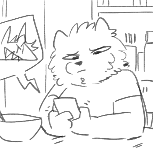 He keeps squinting at Henry to try and get some sign that the wolf cares about how much beef Jess is handling, but the wolf stubbornly keeps his attention on the worm. The irony of the situation is not lost on Jess and he huffs with frustration. Bested by his ex-husband in a made-up game the wolf didn’t even know he was playing, the humiliation!