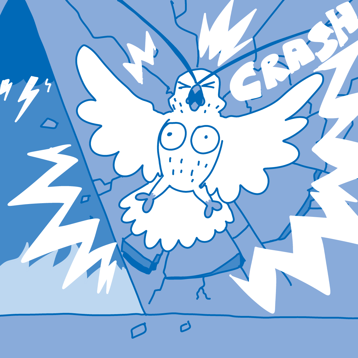 Hooters the Tutori-owl crashes into the wall with a terrible crunch of brick and bone!