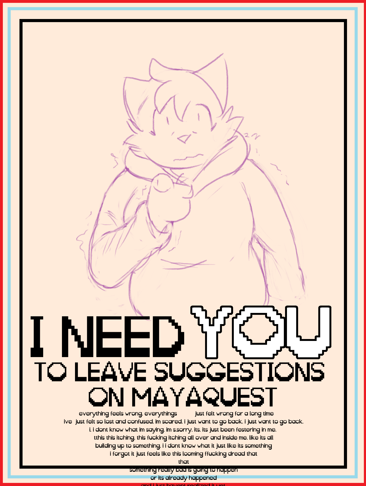| 18:57, 12 December 2025 | MAYANEEDSYOU.png (file) | 449 KB | Maddie | confusing propaganda found littered throughout the sewers | 1 | |