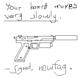 So... I was looking at the threads and stuff and I really like quests. But I suck at drawing. That is why I shall attempt to improve with paint. My first attempt... why does his arms remind me of snakes? Why did I make his hands snakes? I am bad at art.
