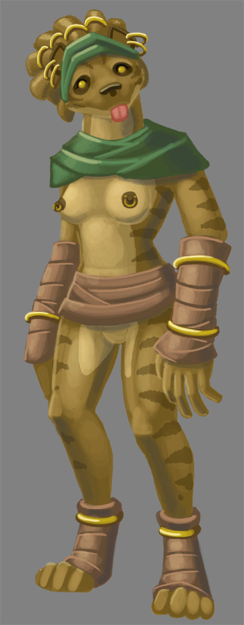 This board doesn't seem to get a lot of love, so I'm going to give it some! This is Kliss, of the Slissa race. Fairly soon there will be a quest revolving around her.