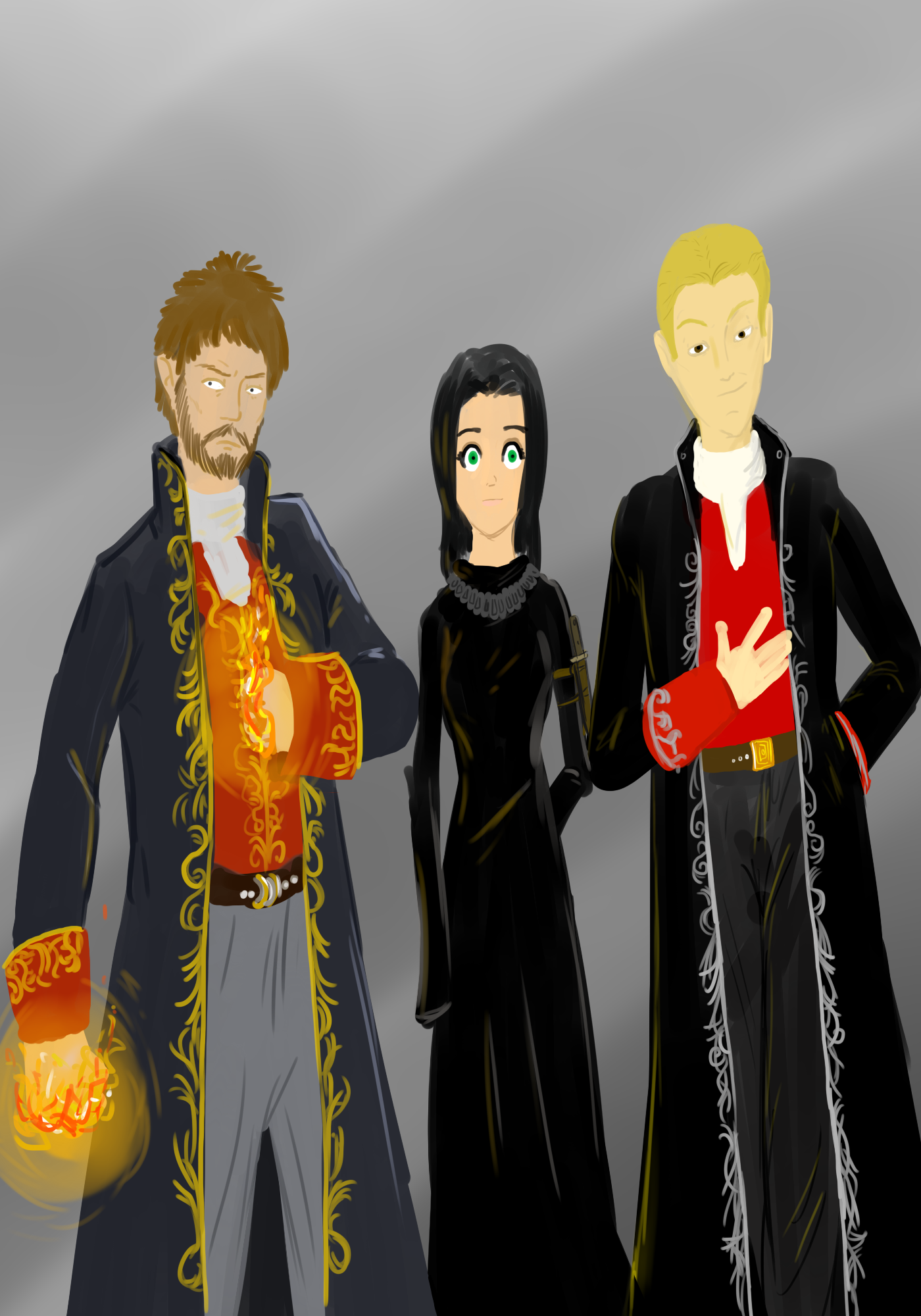 A small boy, no older than five years old, in dark red robes. He has sort of a cocksure smile on his face. Next to him is a small girl, same age, in extremely black robes. She holds a lynx kitten in her hands. A man who looks very much like Rasputin, in black robes with a hand on his daughter's shoulder. He stands with a face of determination, with a tiny smile of satisfaction on his face. He has his hand on his adoptive son's shoulder. This child shouldn't look much like the others, since he is not related to them. He'll have red hair which no one else in the family has. Then next to him is Christina, Vasily's wife(A very good Role-Player and friend). She wears an expertly, incredibly tailored dress. She has the Major Beauty gift in the system, so do try to make her beautiful.