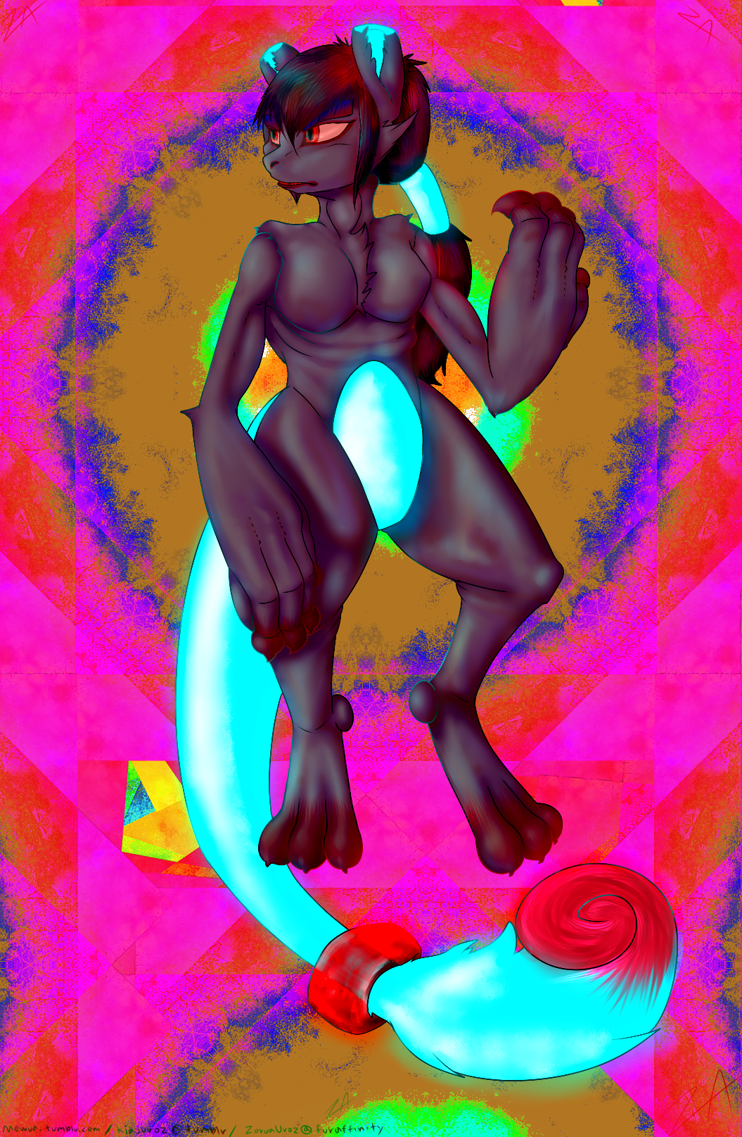 This is my new fursona, his name is Arcus Ecksploziv. he is 2 feet tall and has a really unstable ability to regenerate from anything. his dick is a combination of a tentacle and a canine knot thing and it's green and has mystical swirlies on it. he is my fursona. I have a fursona...