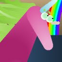 Either leaned against a wall, arms in pockets, making a trollface, or drawing an invisible bow which is causing an arrow made of fire to appear.