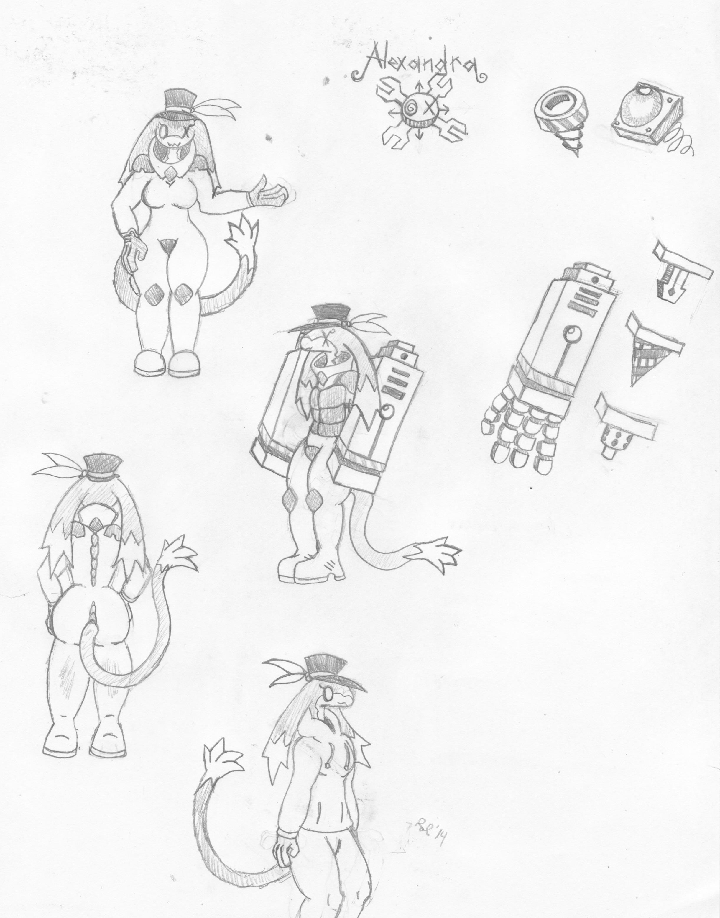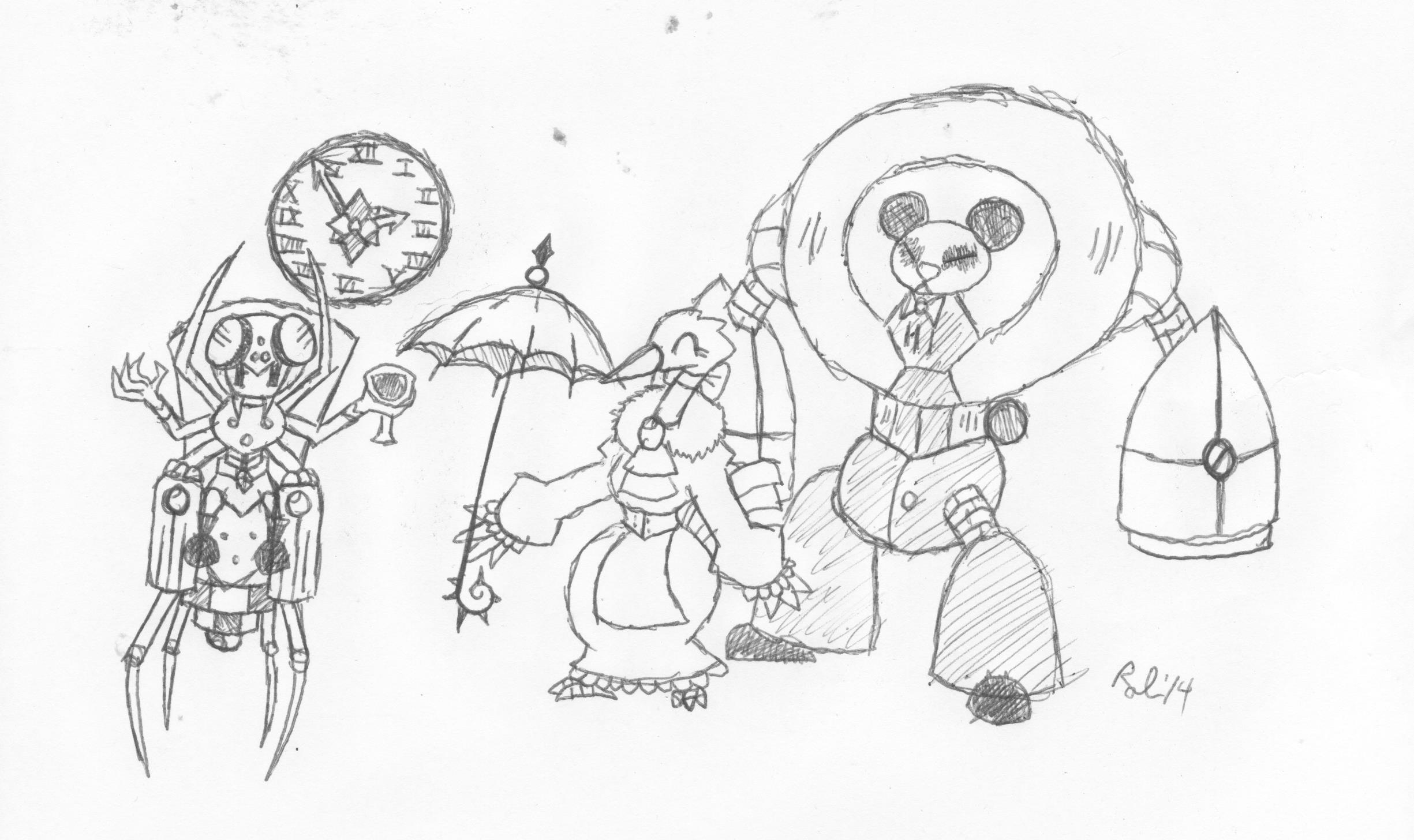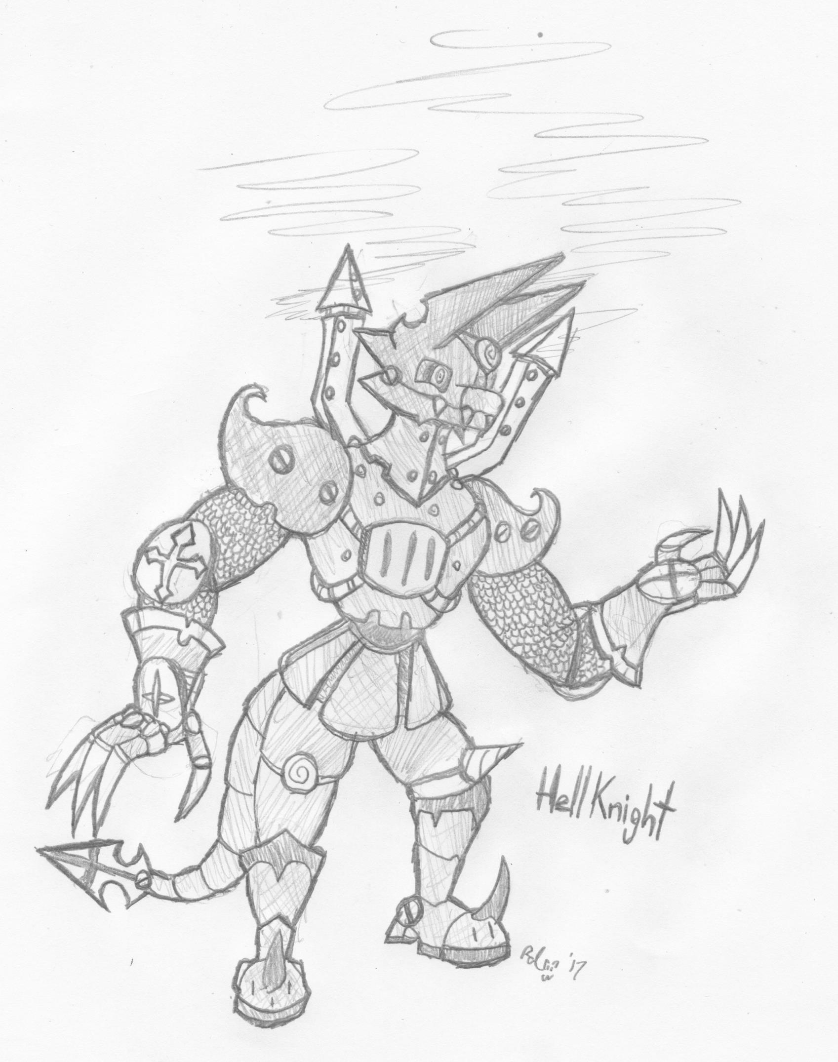 Hostile Junk Golem (Female): Considered far more sadistic and dangerous than even the males, the females of the Hostile Junk Golems have the same ability to build new Golems like their tame counterparts, but are also much more aggressive and prone to extreme violence. They specialize in climbing onto ceilings and surprising enemies, the same electric charge that powers the males used as a way to stun the enemy and leave them open to be torn apart by the bladelike claws. Because their hands are usually full of gore or flesh from battle, these golems weld their keys to their tails rather than carry them.