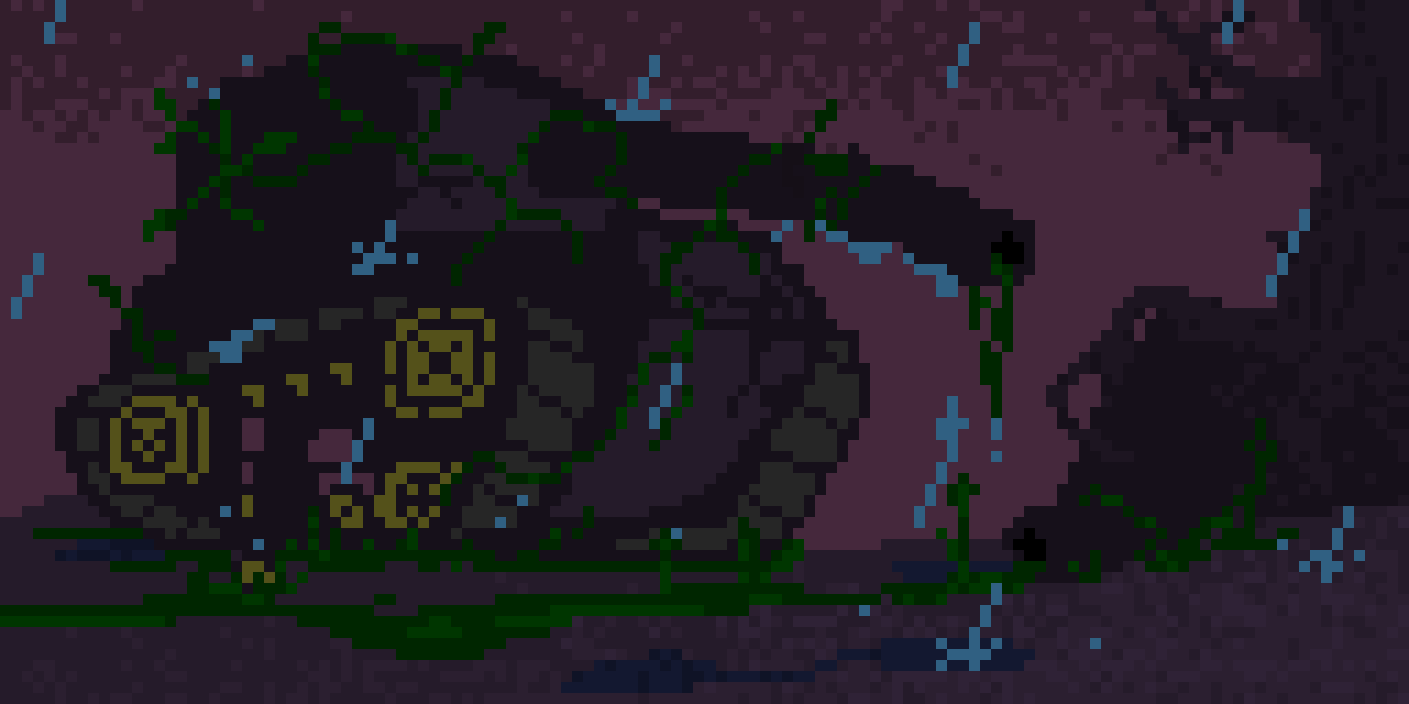 the downside to working in aseprite is that you have to deal with the weird bugs and color weirdness that comes with it. For example, in order to add new lighting I had to manually edit in a new hex color of the brighter bits then paint them on manually after that. Can't just put in a layer at half-transparency like in the photoshops or the zippy-zoops or whathaveyou. Makes it a bit annoying to add neat effects like this sometimes, but in this case I feel it was worth the extra effort.