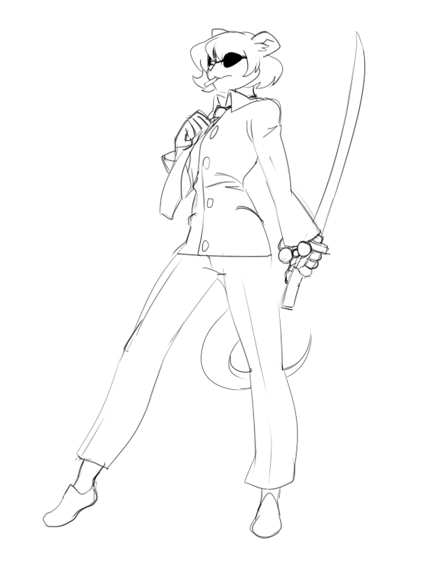 mhmm, 'lizard'... is the newspaper on it's head for fashion? Asside from the attire, the body is preemo thumbs up stuff. To do good with a mouse is to have a solid resistant surface for better line control- boy do i know about using mouse art, it is hard.