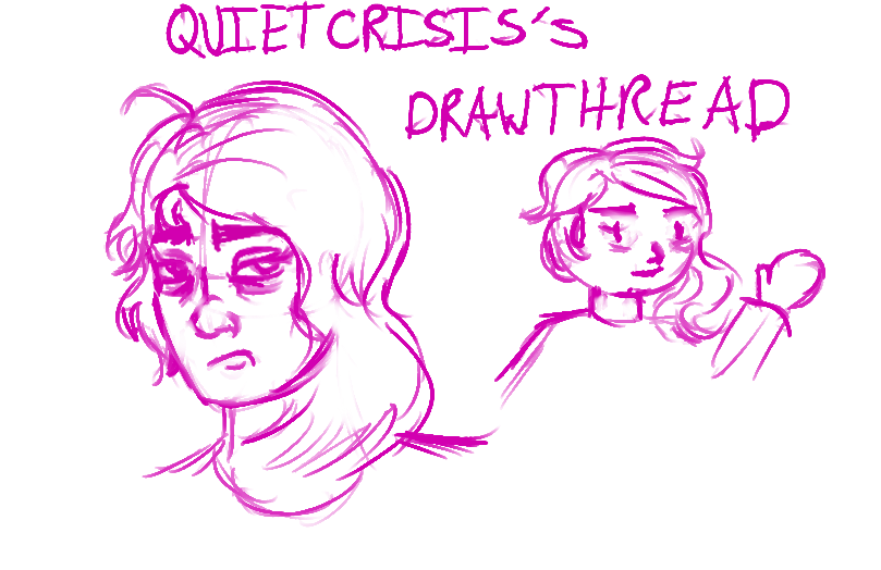 Hey, sup. I'm Claire, you may know me as the creator of Dead On Arrival or AI Box Quest. I'm very tired, and I'll be studying to be a costume designer in the fall. Sometimes I draw stuff that's not horrible murder scenes or very lo-res character pictures. Anyway I'll probably post mostly doodles here. May or may not take requests depending on my mood. Keep it SFW, please, and I reserve the right to turn down any requests yada yada yada.