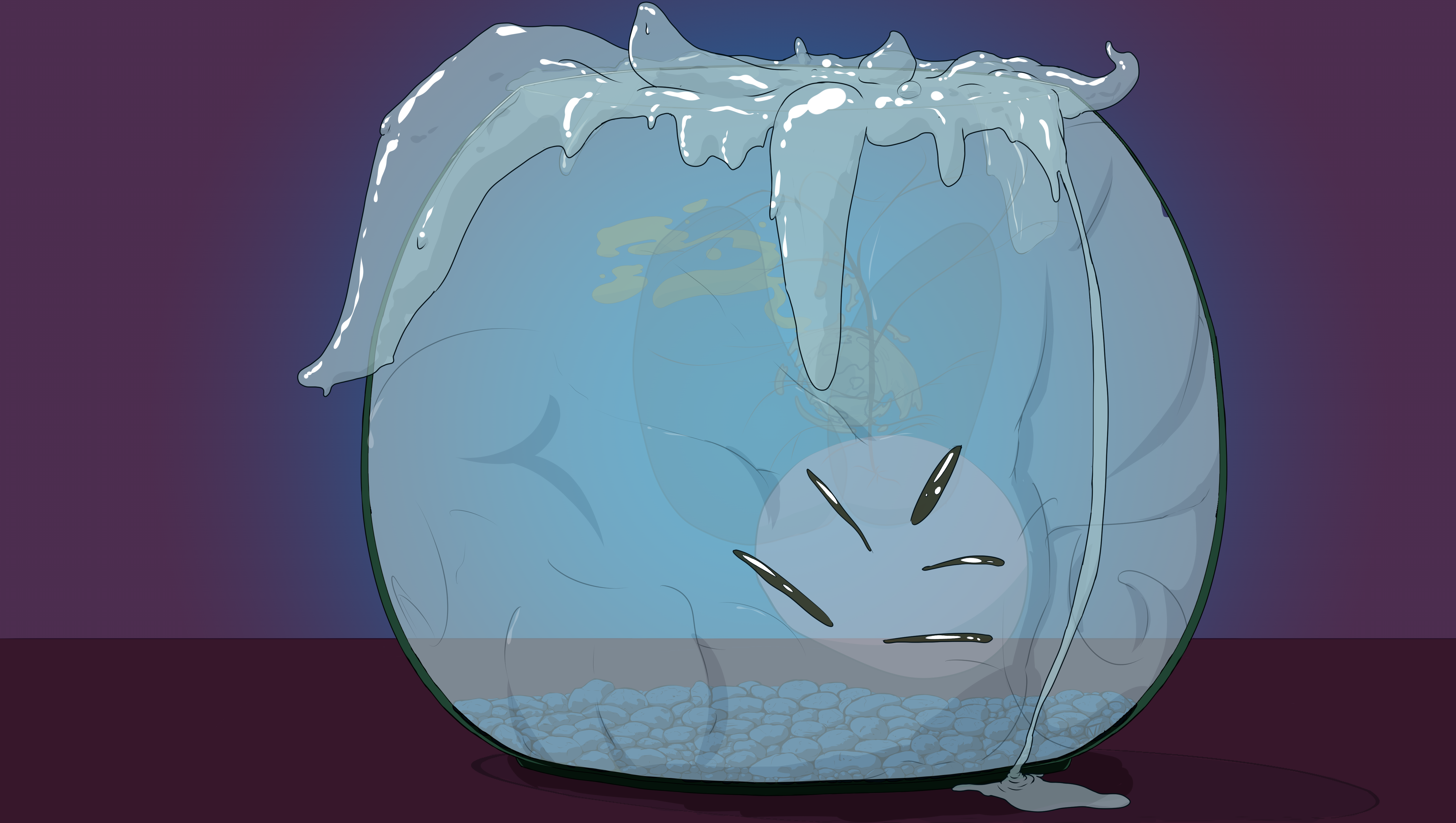 Oh no Blip! Don't melt? So, what is Blip? She looks like a slime, but she has defined internal organs, which aren't typical of slimes. It's very interesting.