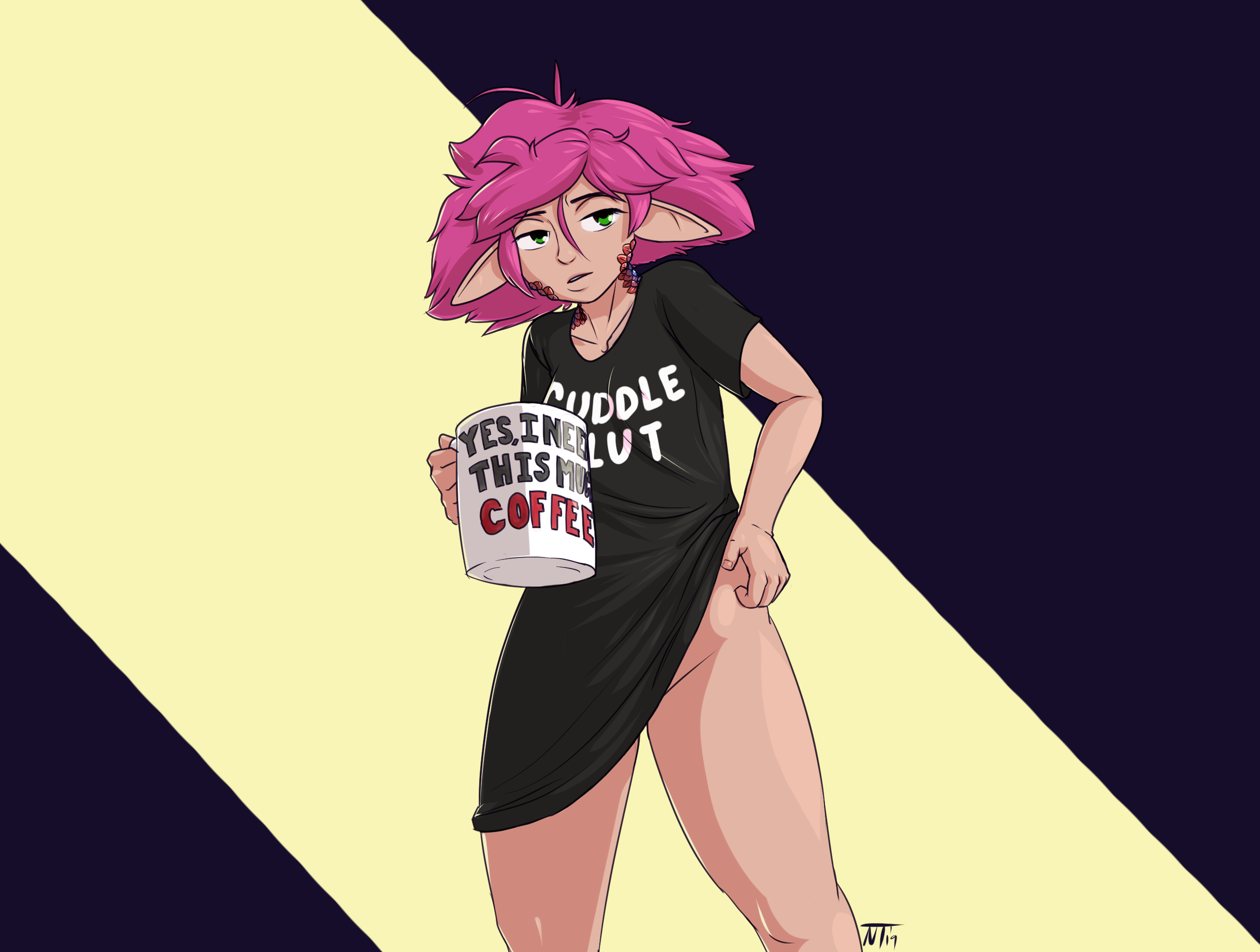 I got a sketch of one of my characters a whle back. Colored it in myself last night. Original sketch by Flausch. https://flauschdraws.tumblr.com/post/177890709101/did-some-sketch-requests-tonight-on-stream