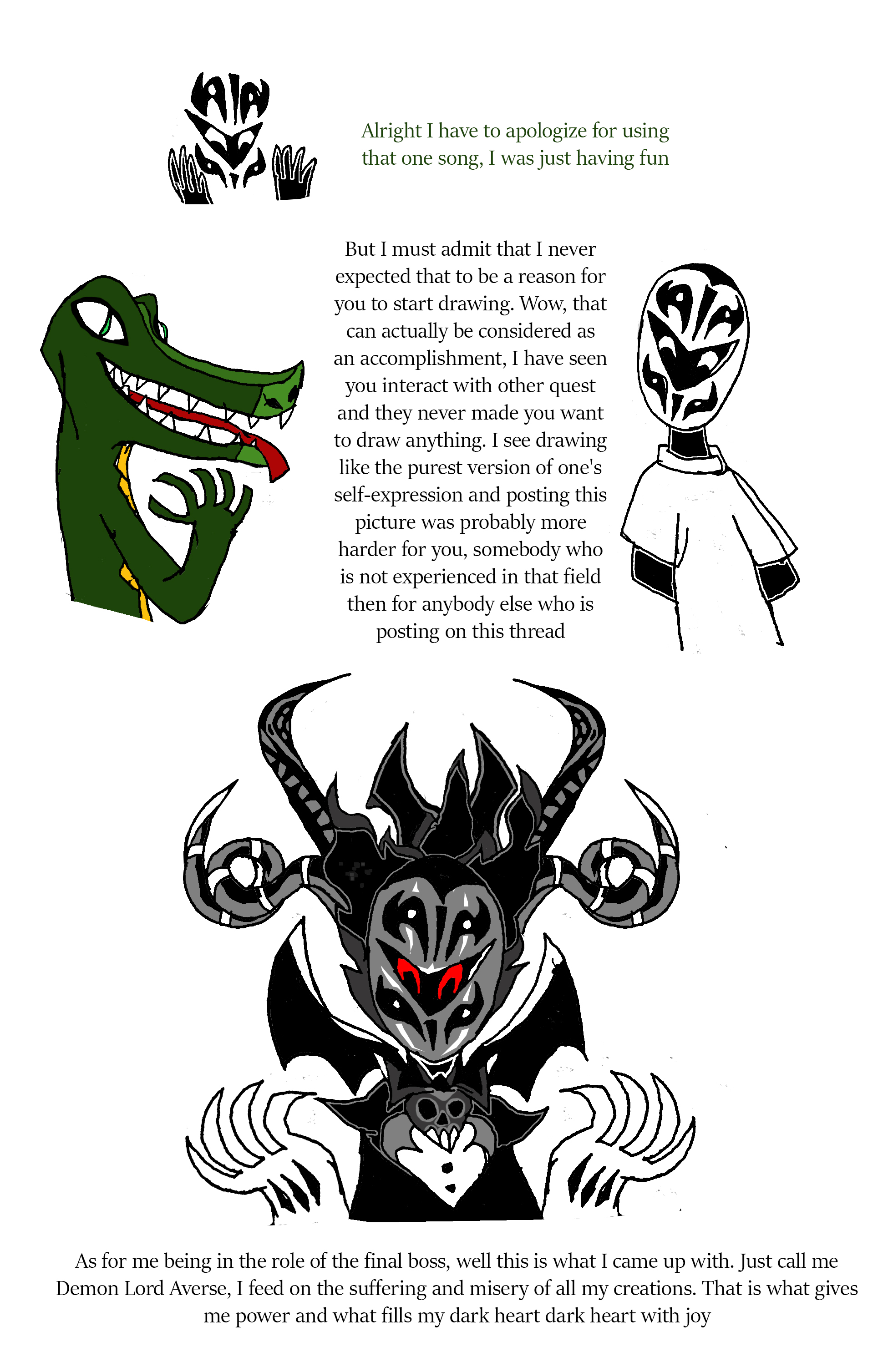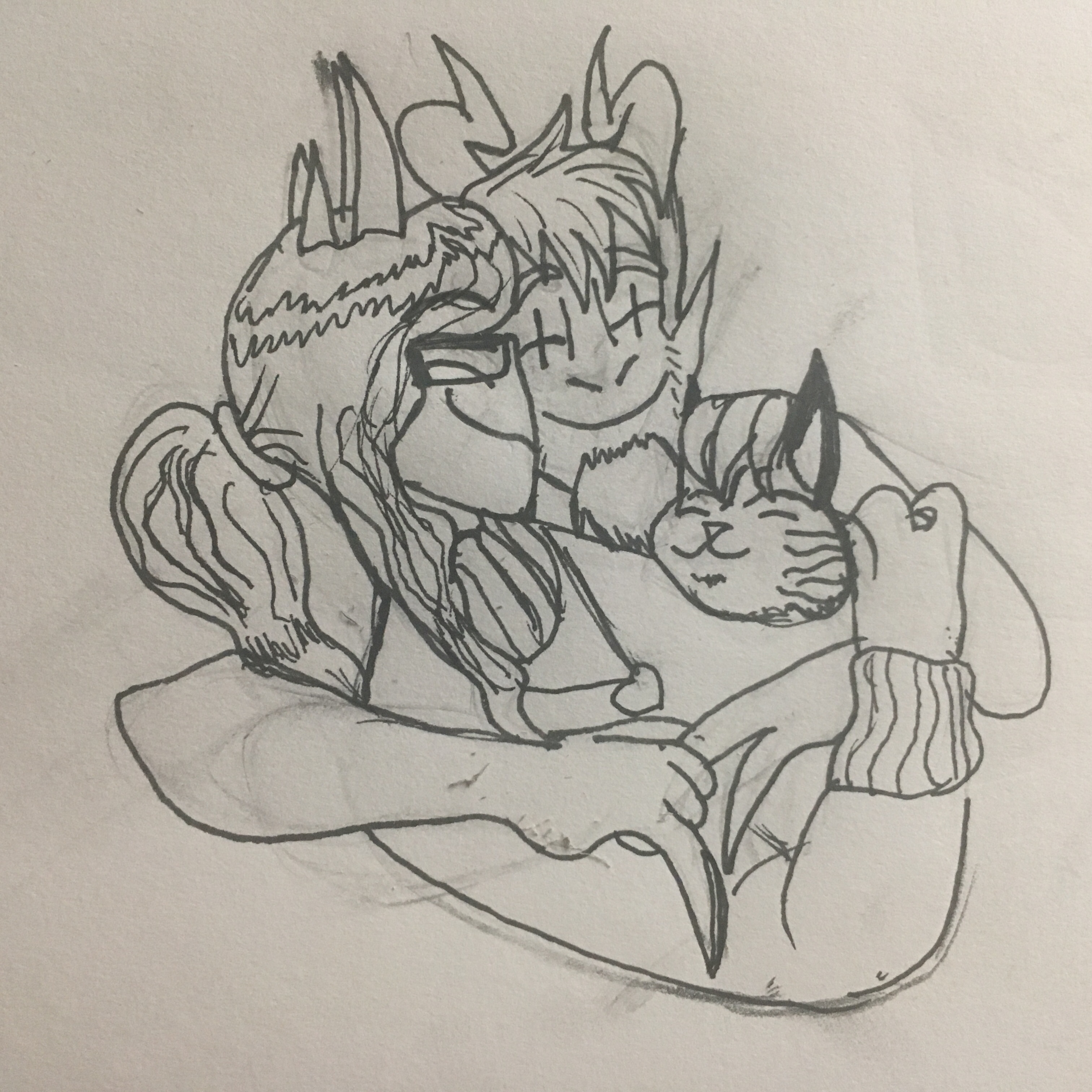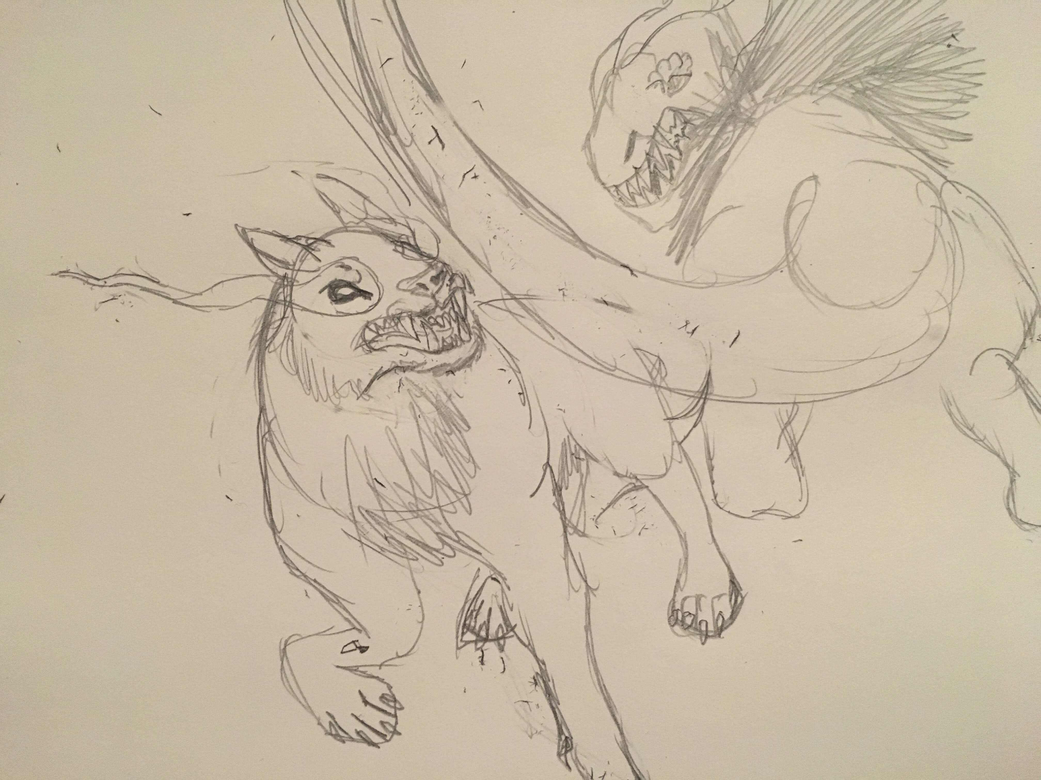 Her father’s face grew pale. “Get down! Get down!” He hissed, hiding behind a shop counter. She did as she was instructed. The trot of a horse grew closer, bringing with it the buzzing of a hundred flies. Cloven hooves clacked onto the cracked and broken linoleum tile. The creature scented the air, long ears flicking back and forth. The ink that poured down from its clouded eyes dripped down to the floor. A long tail ending in a tuft of dirty, matted hair. Its mane writhed with maggots, and a long, seemingly overgrown horn protruded from the center of its skull, closely followed by other smaller outcroppings. Its teeth were still covered in viscera, unfortunately old and dried on. The teeth themselves were long and jagged, almost as if they had grown out and broken at many different angles. A horrid stench surrounded it, akin to rotten meat and festering feces. It surveyed the abandoned convenience store, and after what seemed like an eternity of waiting, left. Emma opened her mouth to speak, but her father put a finger to his lips. They waited for thirty minutes. Finally, Blake lowered his hand.