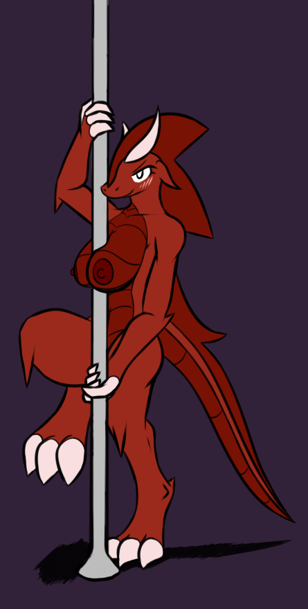 And secondly, without anything holding them together, her breasts, as sexy as they are, they can't squish the pole on their own :P