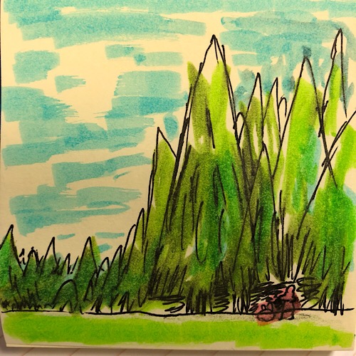 Try either propping the drawing up and taking a image with the phone held vertically or close to vertical, or holding the phone in the vertical orientation, rotate it to the desired landscape or portrait position, then bring it down to near horizontal over the drawing to take the image.