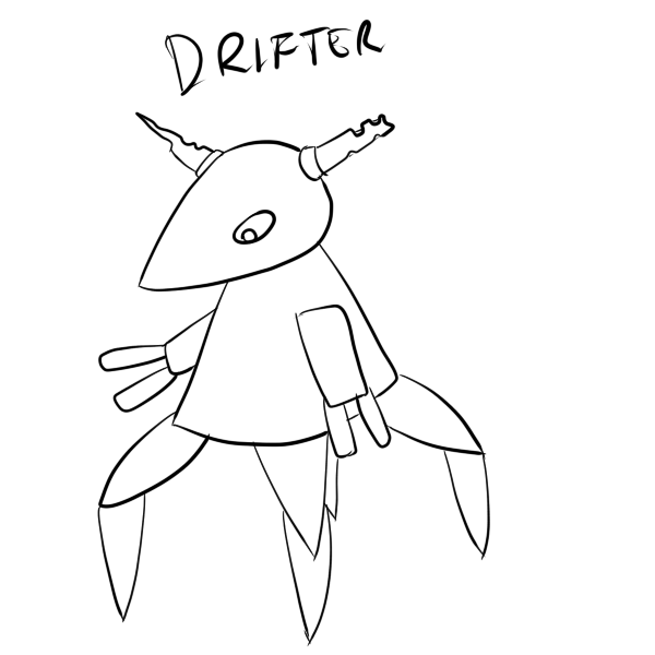 People wanted robots. Cirr provided the first reference. So I drew Drifter from Red Sky.
