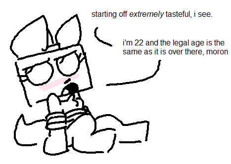 >>40822 Excuse me! Starting off extremely tasteful statement seems a bit odd to me. Especially after previously posting a picture where you spread your legs on the pillow with a grin on your face. Other than all those things I just want to say hello, it is a pleasure to meet you