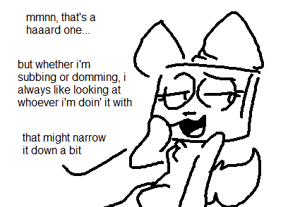 >>40831 Yeah I do tend to talk a lot, it's just the way that I am, I guess. As for you not having enough story for a quest isn't a problem, talking and being horney is enufe for an intresting interaction. Speaking of you being horney what is your favorite possition?